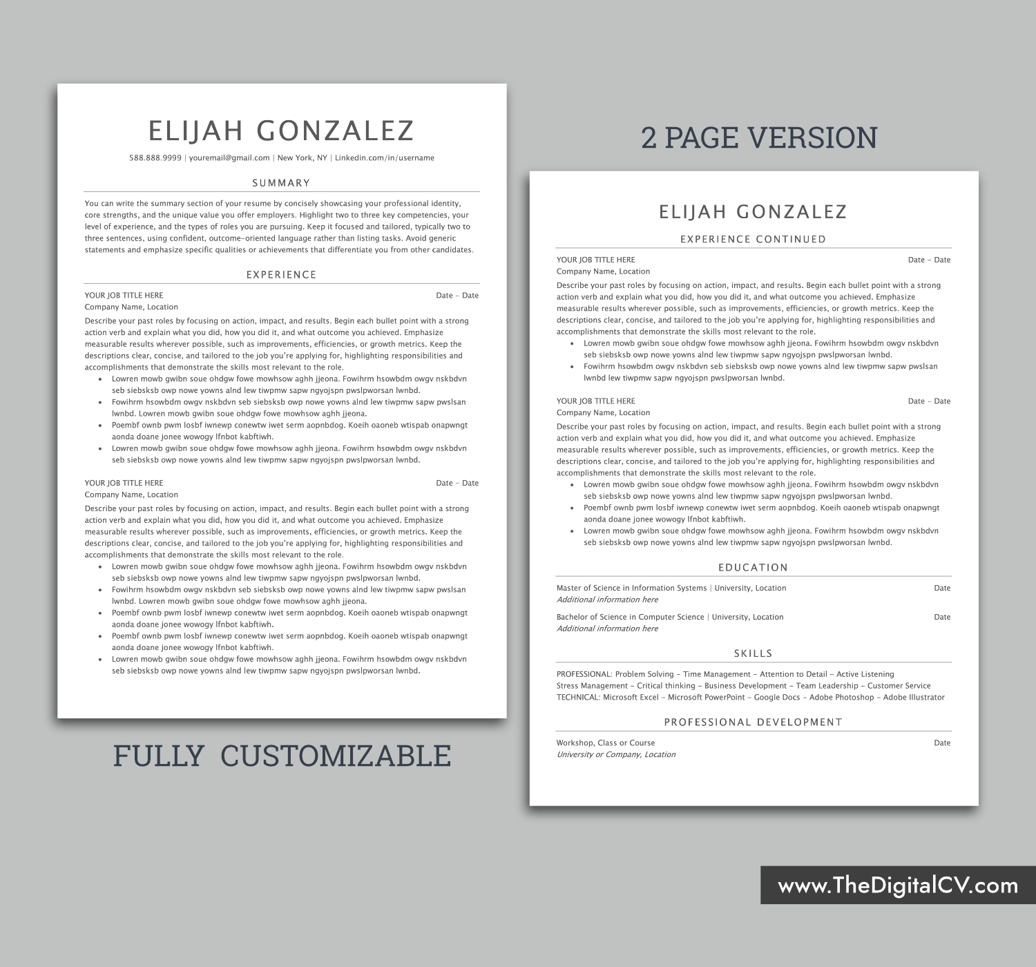 – All designs are copyright and original to www.TheDigitalCV.com.
